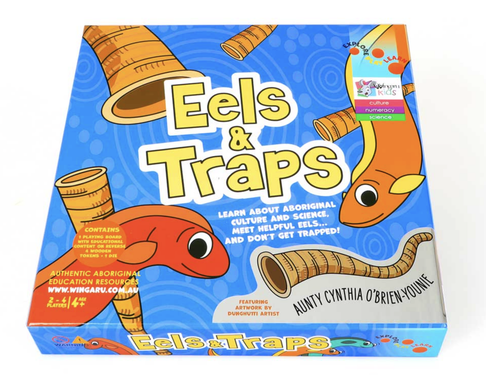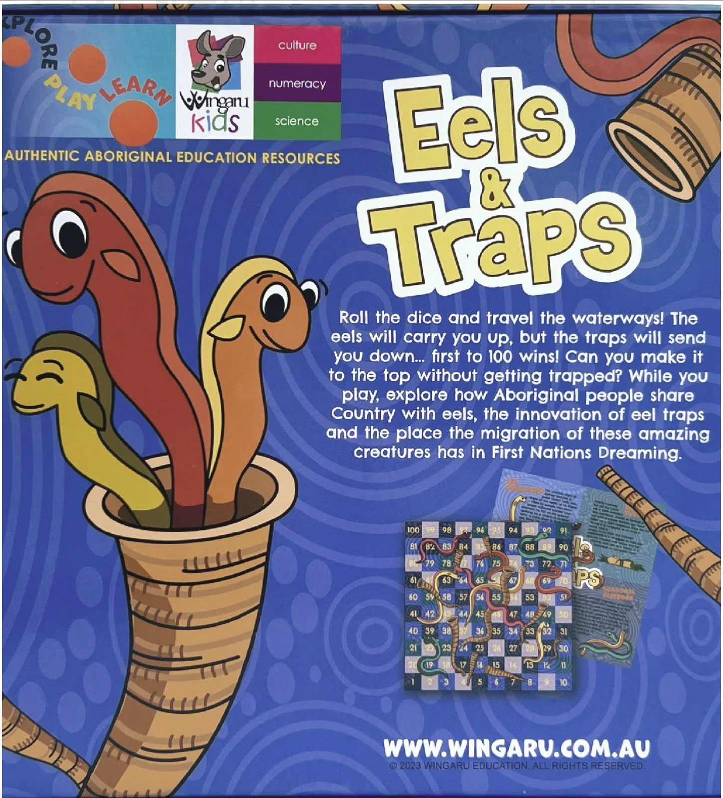 Throw the dice and count your moves on this beautifully illustrated game from First Nations educational resources team, Wingaru Kids. When you land on an eel, you can ride all the way up its helpful back. Land on a trap and down you slide.