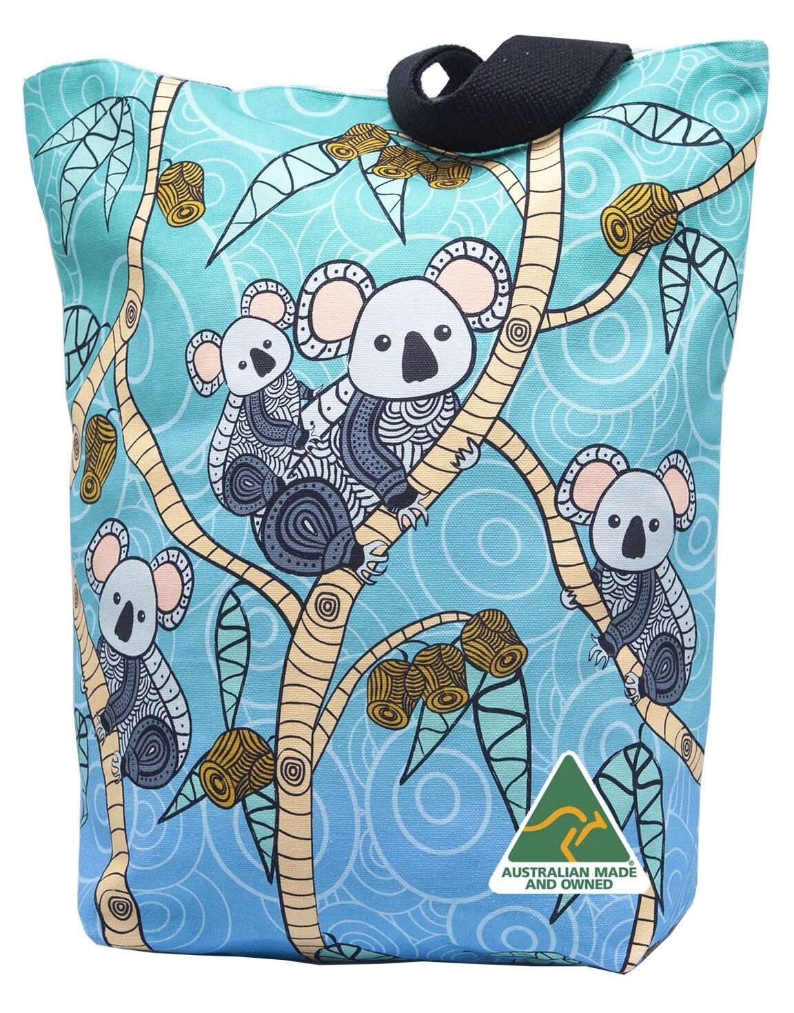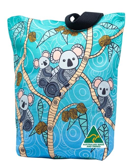 Yakinno Gunditjmarra Dreaming Cotton Canvas Shopping Bag (38cmx43cmx10cm) -      Gunditjmara Koalas [Blue] by Tanya Debono (Yankinno)
